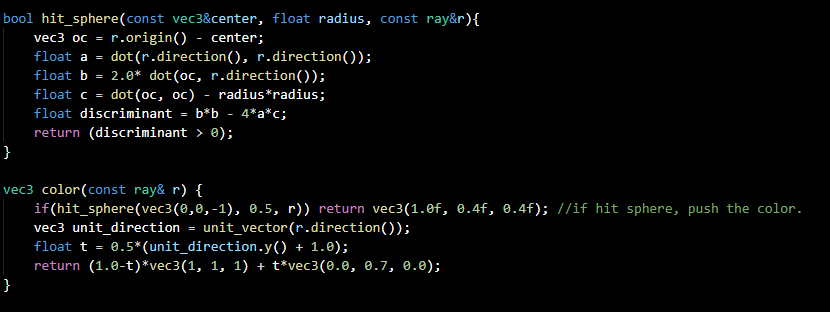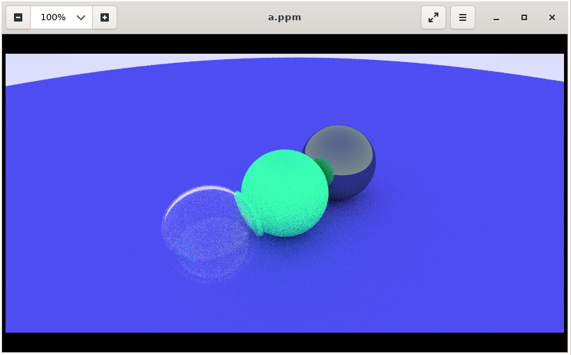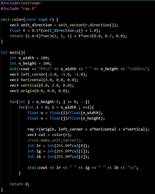 $ g++ main.cpp -o c1.out $ c1.out >> first-image.ppm